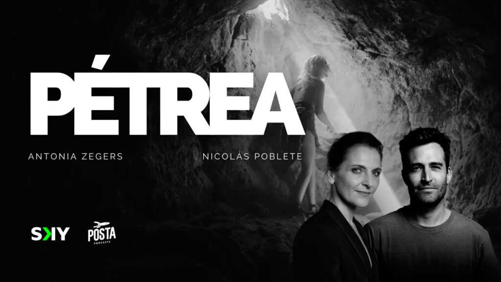 Pétrea nació de un pitch cerrado entre la productora y la aerolínea mencionadas más atrás. La consigna era clara: diez episodios en los que debían suceder aventuras que incluyeran vuelos por los destinos que recorre SKY. Y, sin embargo, ese punto de partida comercial se convirtió en una excusa narrativa. “Con eso me dieron total libertad para diseñar un universo, un personaje y un arco narrativo. Este branded podcast -o podcast de marca- siempre estuvo pensado como una ficción”, cuenta Maru. El elenco -protagonizado por Antonia Zegers y Nicolás Poblete- se definió más adelante, pero influyó en cómo terminó de moldear la escritura. “Aprendí de ficciones sonoras escuchando a Zegers. Saber que iba a actuar en mi historia fue escalar mis propias expectativas como autora”.